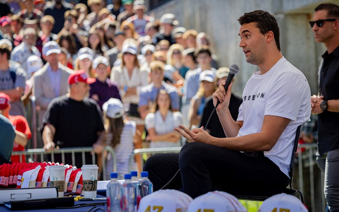 Charlie Kirk speaks before he is assassinated during Turning Point’s visit to Utah Valley University in Orem, Utah, Wednesday, Sept. 10, 2025. (Tess Crowley/The Deseret News via AP)