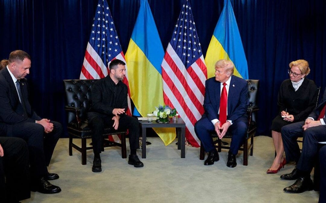 President of Ukraine Volodymyr Zelenskyy, center left, speaks during a meeting with U.S. President Donald Trump at the 80th session of the UN’s General Assembly at United Nations headquarters Sept. 23, 2025, in New York City. (Photo by Chip Somodevilla/Getty Images)