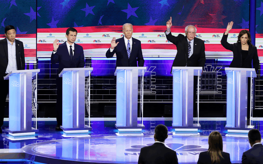 Democratic presidential candidates debate each other on NBC News in June 2019 in Miami, Florida. (Drew Angerer/Getty Images)