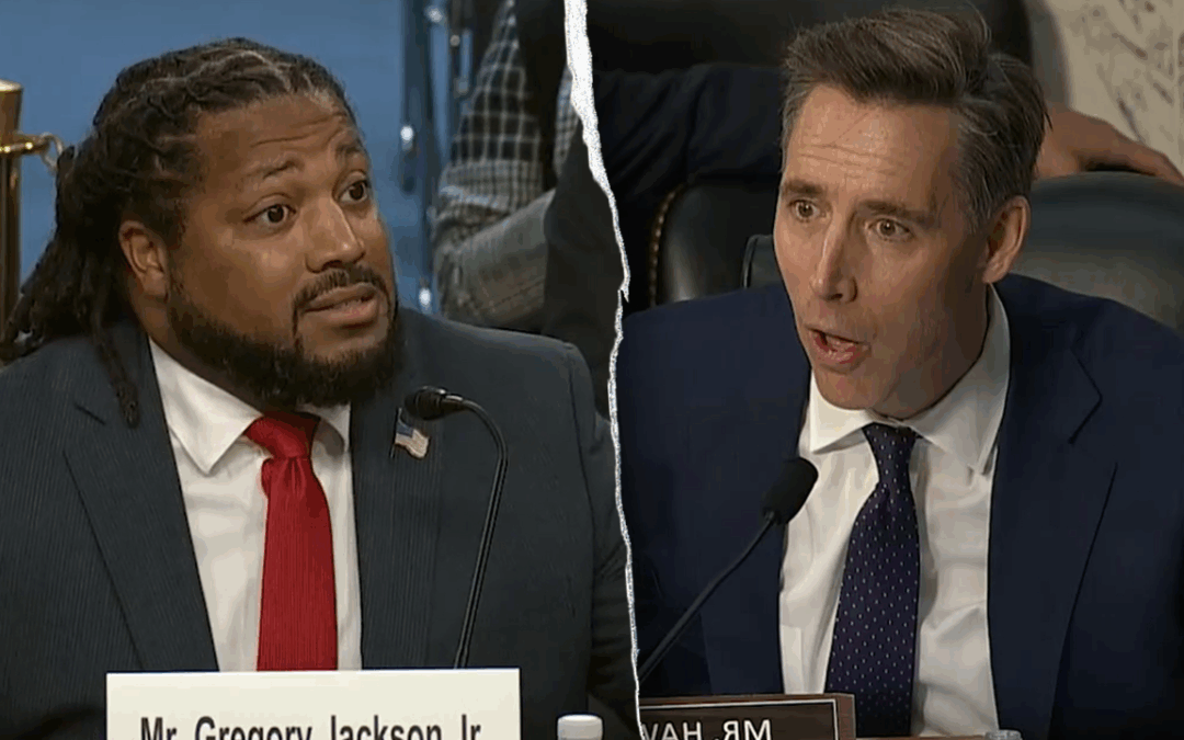 Hawley challenged Gregory Jackson Jr., who served as deputy director of the Biden White House’s Office of Gun Violence Prevention and, more recently, as the head of Community Justice Action Fund (CJAF), over the organization’s policies on creating safe spaces for “two spirit” individuals.